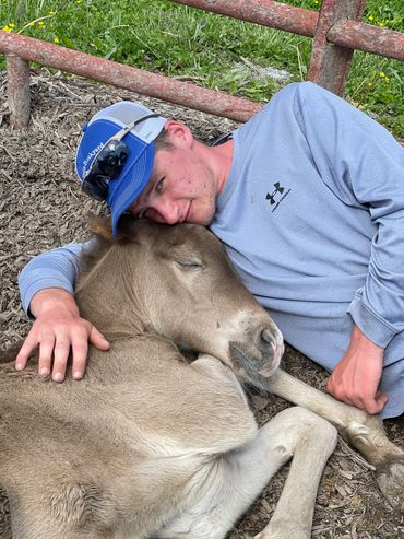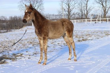 One of the sweetest most friendly colts you will ever come across. I raised his father "Designer" from a baby as well and he has a ton of his traits already, one of the biggest is being fearless to stuff that should be scary to most horses! I love his father like I love this colt at an early age because of their brains! BUTTT I also breed for horses that can perform and have a super desirable soft easy gait. This colt should be pretty automatic in his gait, reverting slightly back to the trot rather than the pace. Should have an amazing slow gear and a great second gear and be super smooth at doing both. My guess is he will mature to 15.0 - 15.1 hands. Also, his mother is one of the top performing mares of ALL TIME! Bred to thrive at whatever he does!
