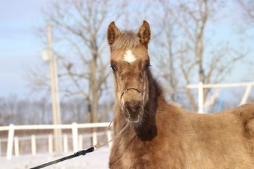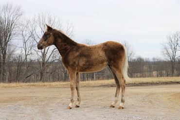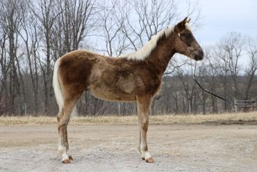 This filly is by a stallion I raised and still own Designer. She is very smart, curious, and witty. We nicked named her Bambi because she looks like a little deer, super pretty. She should have an awesome gait with zero pace reverting back to the trot. Mature height should be around 14.3-15 hands. Very stocky and strong, she was the last foal I had born this year which makes her a couple months younger than most of the others. She should excel at trail riding and breeding.
