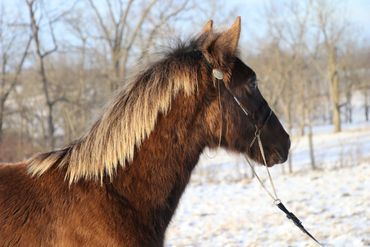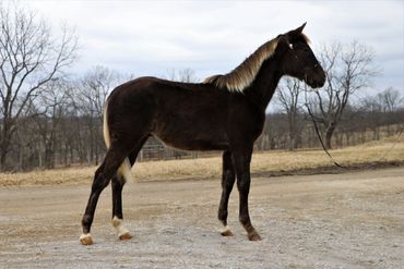 Durable. Strong. Solid Gait. Brilliant Mind. Trail Riding Machine over any terrain! I know this because his mother was the first Rocky Moutain Horse I ever purchased. Every brother and sister I ever raised were everything I listed above. This may very well be the last colt she will ever have and I will say I have bonded with him and really really like him. He may be the front runner for the favorite of mine that she's produced and she has never produced a slouch. Some of the best trail riding horses you could ask for. Mature height will most likely be 15.1-15.3.