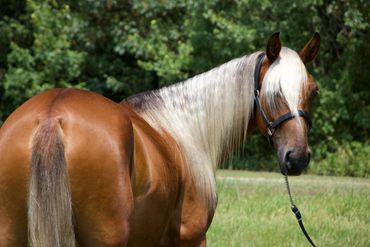 Maggie is a registered Rocky Mountain Horse who is sired by TR'S Rockin' The Blues who is now a gelding and that's where she gets her looks from, I actually bred and raised him as well. Her mother is an old mare I have named VBF'S Dandy Dawn, she has produced many great trail riding and versatile/obstacle horses, and that makes a ton of sense because Maggie has an amazing head on her shoulders. She's a thinker, extremely smart, laid back, and to top it off she's very very smooth just like her sire! She is a mare that could make a great family oriented horse, trail riding horse, trail obstacle horse, probably even a nice show horse. Maggie is everything I look for in a mare for producing fine offspring, if I'm being very honest the only reason I'm selling her is because of her looks, if she weren't as unique and beautiful as she is, I would definitely keep her to produce offspring with brains, disposition, and gait, but this is how I make my living and I know when her person see's her they'll see what I see in her and she's too pretty and too good to sit in the field. I'll throw some of her baby pictures up with her current pictures as well.